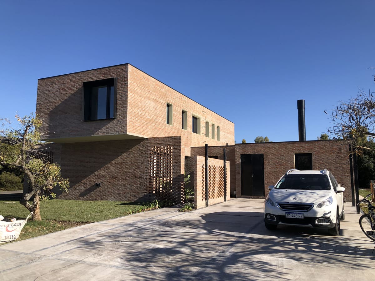 La obra inició con una platea en fundaciones acompañado con estructura de hormigón visto de vigas, columnas y losa en entrada vehicular y galería, con tabiques en sector de la parrilla continuando con la obra realizamos toda la mampostería y las terminaciones interiores y exteriores. En las terminaciones interiores se realizó colocación de porcelanato en todo los pisos y pintura blanca satinada en todas las paredes y techos. En las terminaciones exteriores se realizó revoque proyectable acompañado con revestimiento texturado tarquini color natural por otro lado en las entradas vehicular y peatonal se hizo un acabado de hormigón alisado con marmolina.